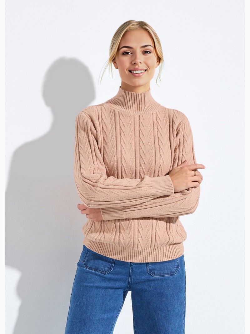 Pull chaud col montant côtelé et torsadé - Camel