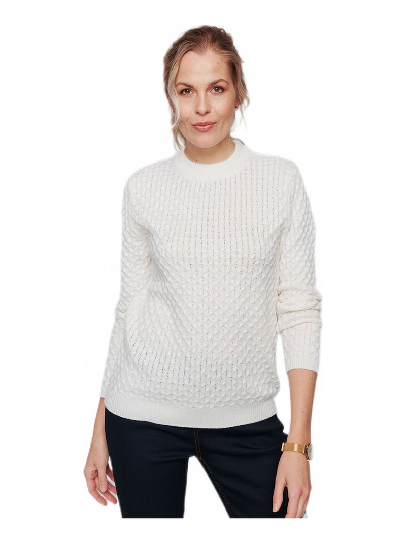 Pull chaud court col montant maille épaisse - Ecru