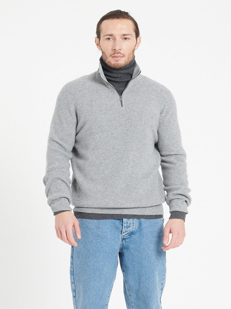 Pull col camionneur homme 100% cachemire bleu marine - ZACH 2 - Gris clair