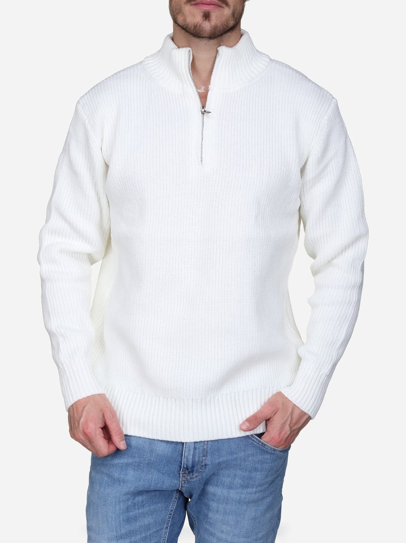 Pull col montant zippé - Blanc