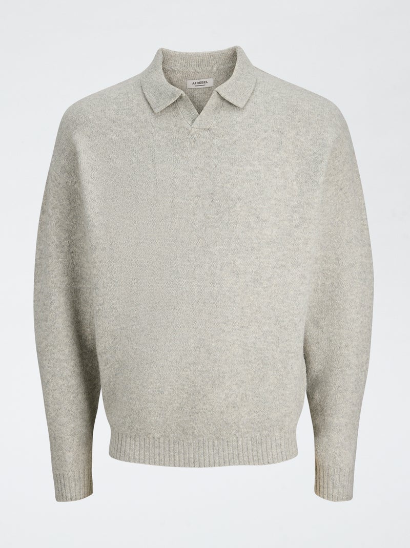 Pull col polo uni 'JJ Rebel' - Beige