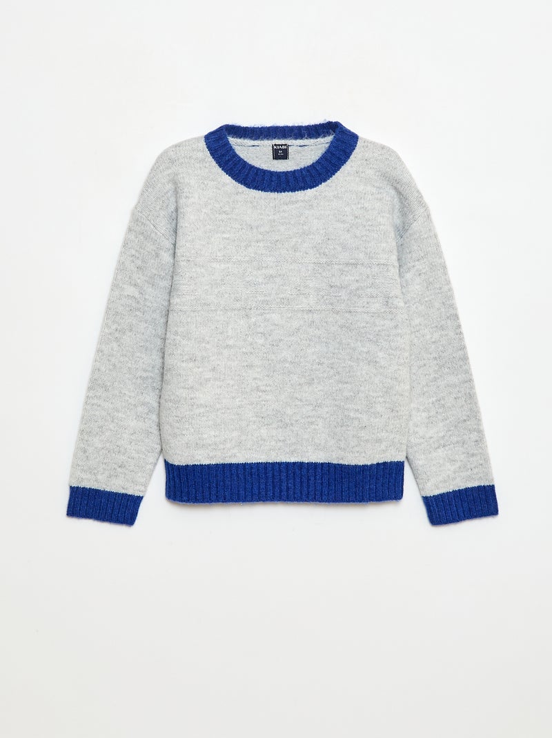 Pull col rond avec frise - Gris