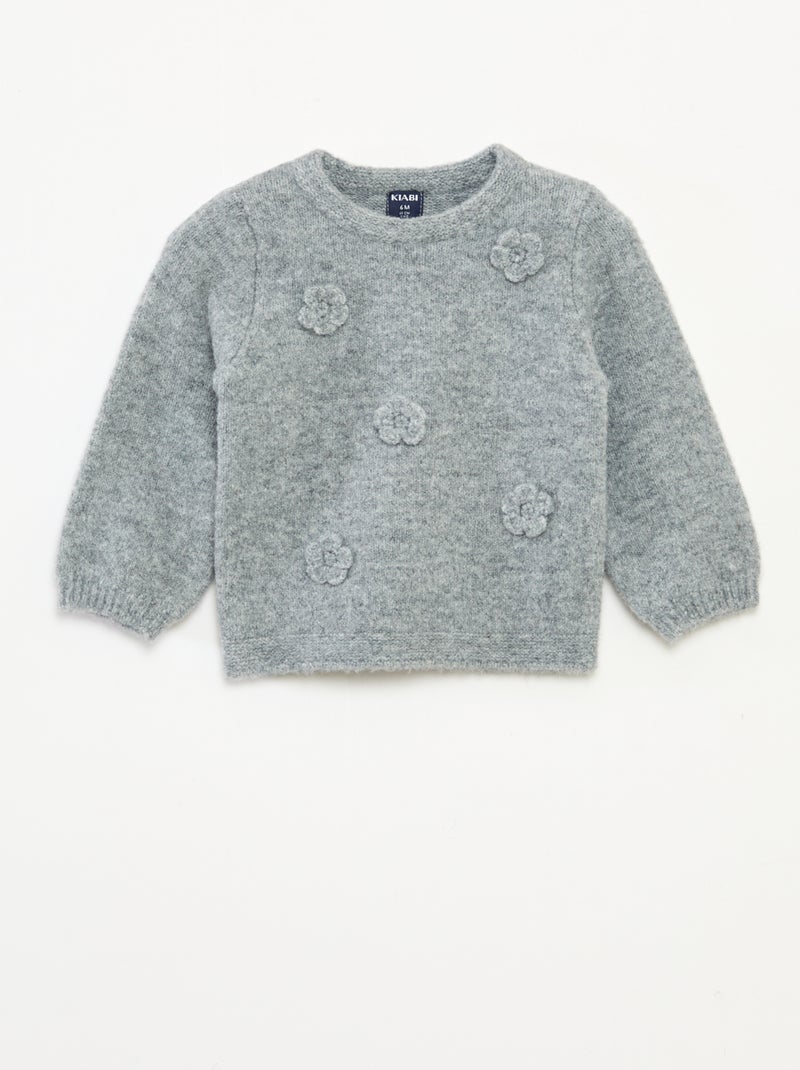 Pull col rond avec patch fleurs - Gris