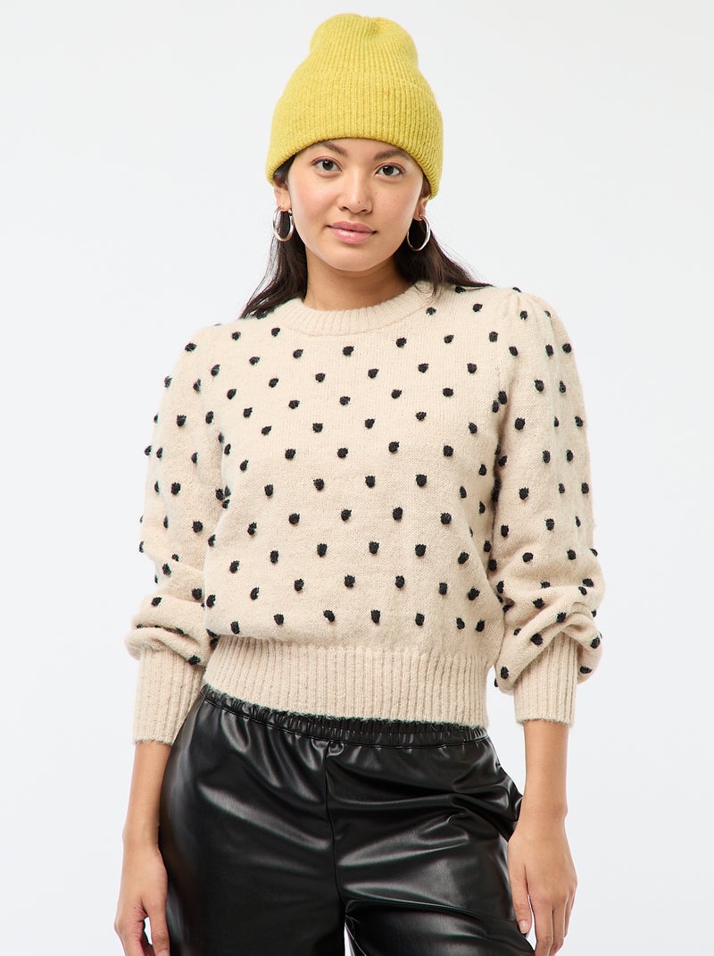 Pull col rond avec pois en relief - Beige