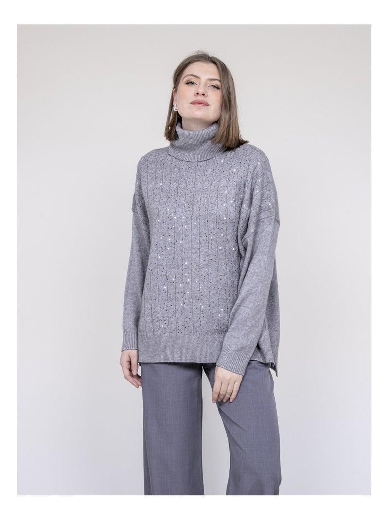 Pull col roulé à sequins KARLINE - Gris