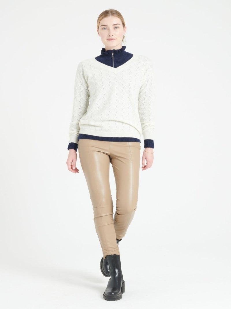 Pull col V femme 100% cachemire ajouré - LILLY 27 - Blanc Ecru