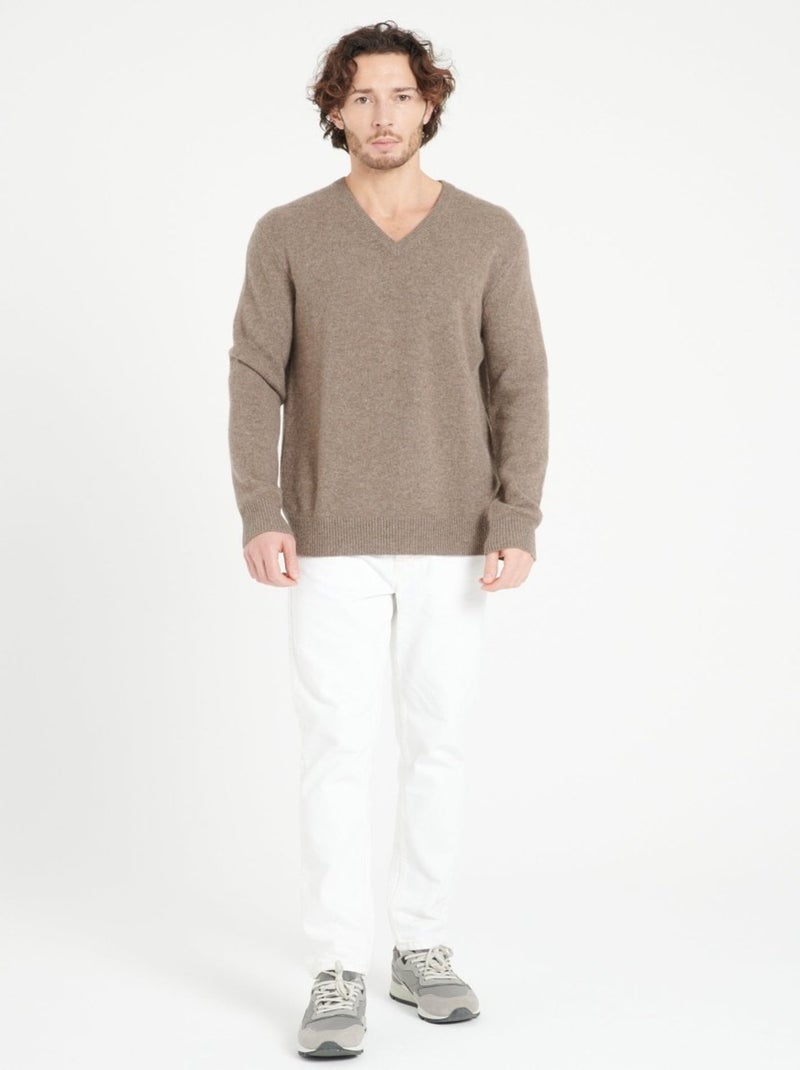 Pull col V homme 100% cachemire 4 fils - LUKE 13 - Taupe
