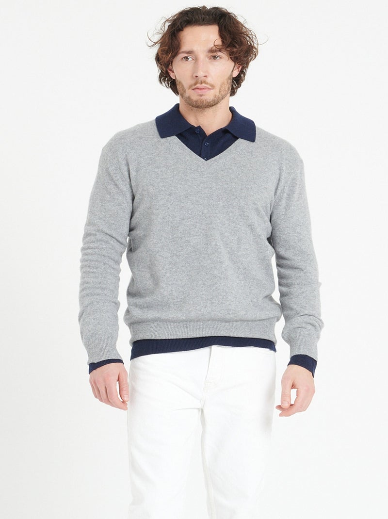 Pull col V homme 100% cachemire - LUKE 1 - Gris clair
