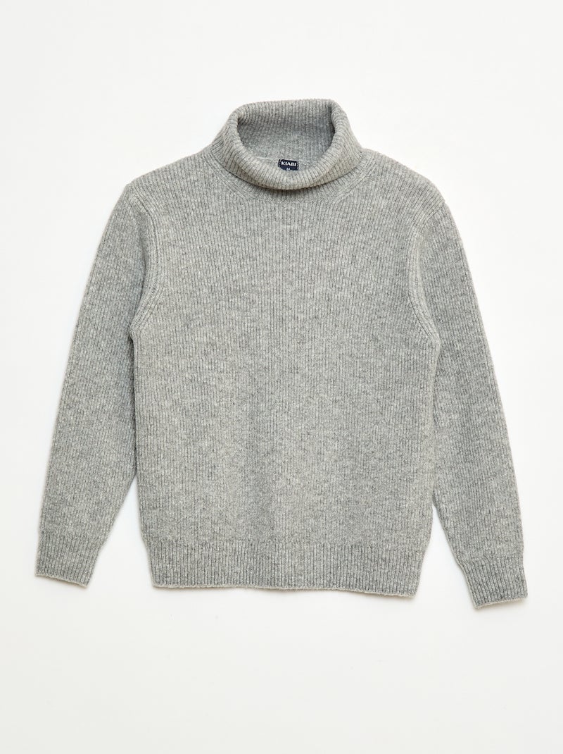 Pull côtelé uni à col roulé - Gris