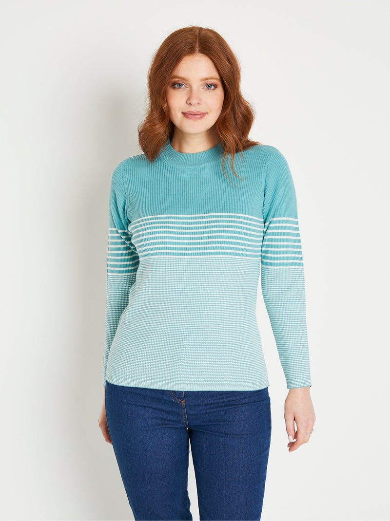 Pull court col montant maille côtelée - Bleu aqua