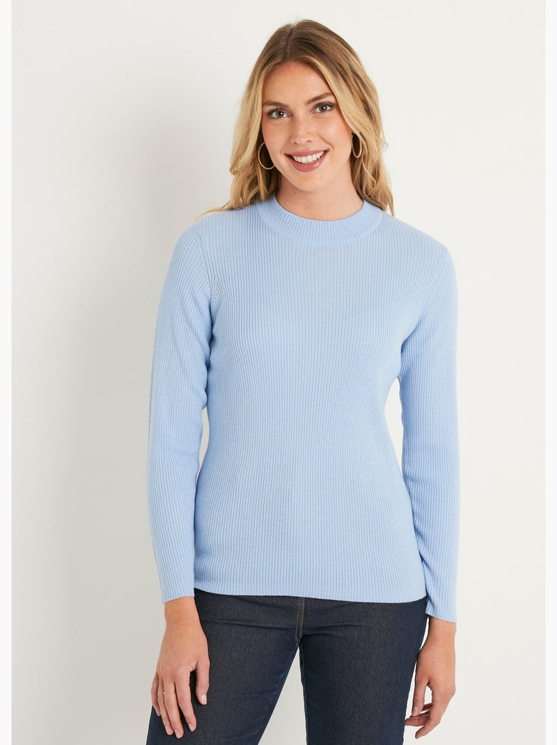Pull court col montant maille côtelée - Ciel
