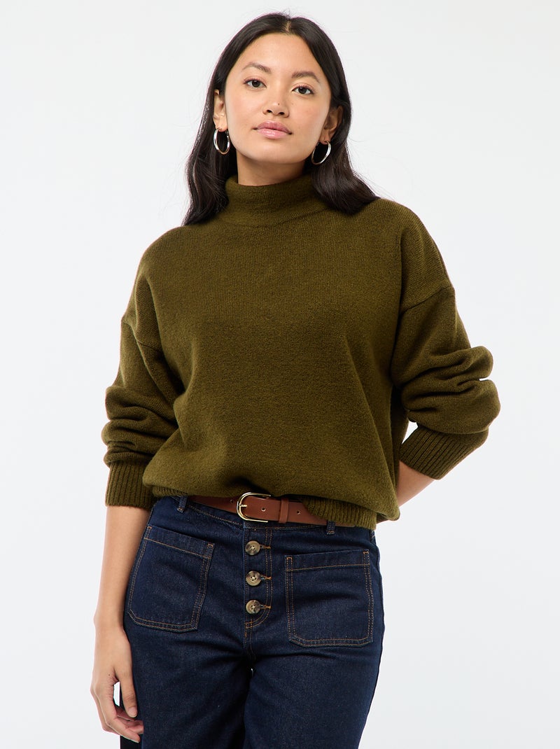 Pull doux avec fente bijou au dos - Kaki