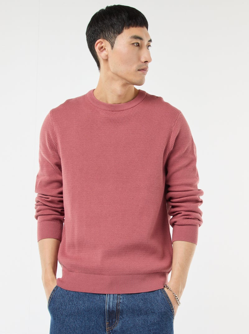 Pull en maille fantaisie à col rond - Rose