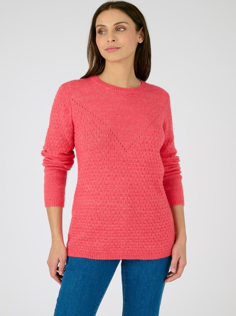 Pull maille ajourée et point fantaisie Thermolactyl - Damart - Orange corail
