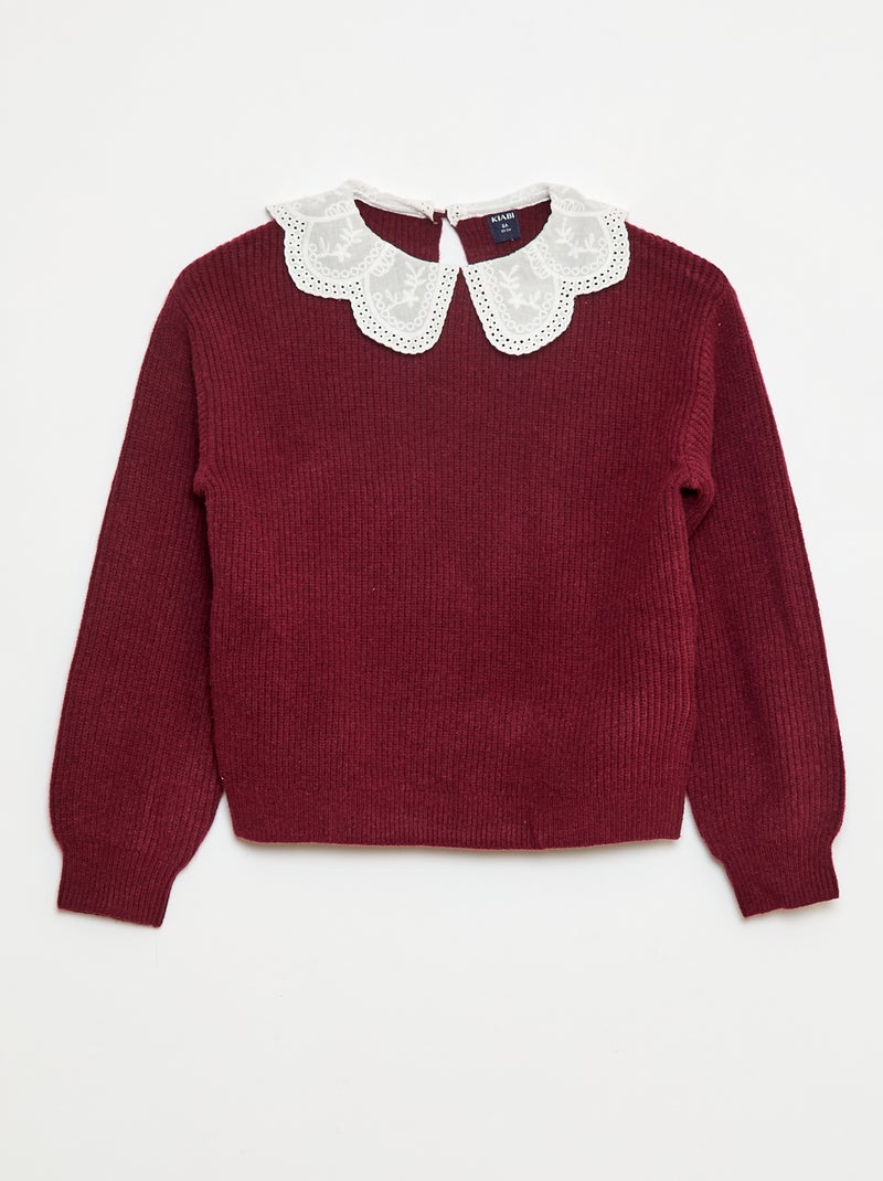 Pull maillé avec col claudine - Rouge