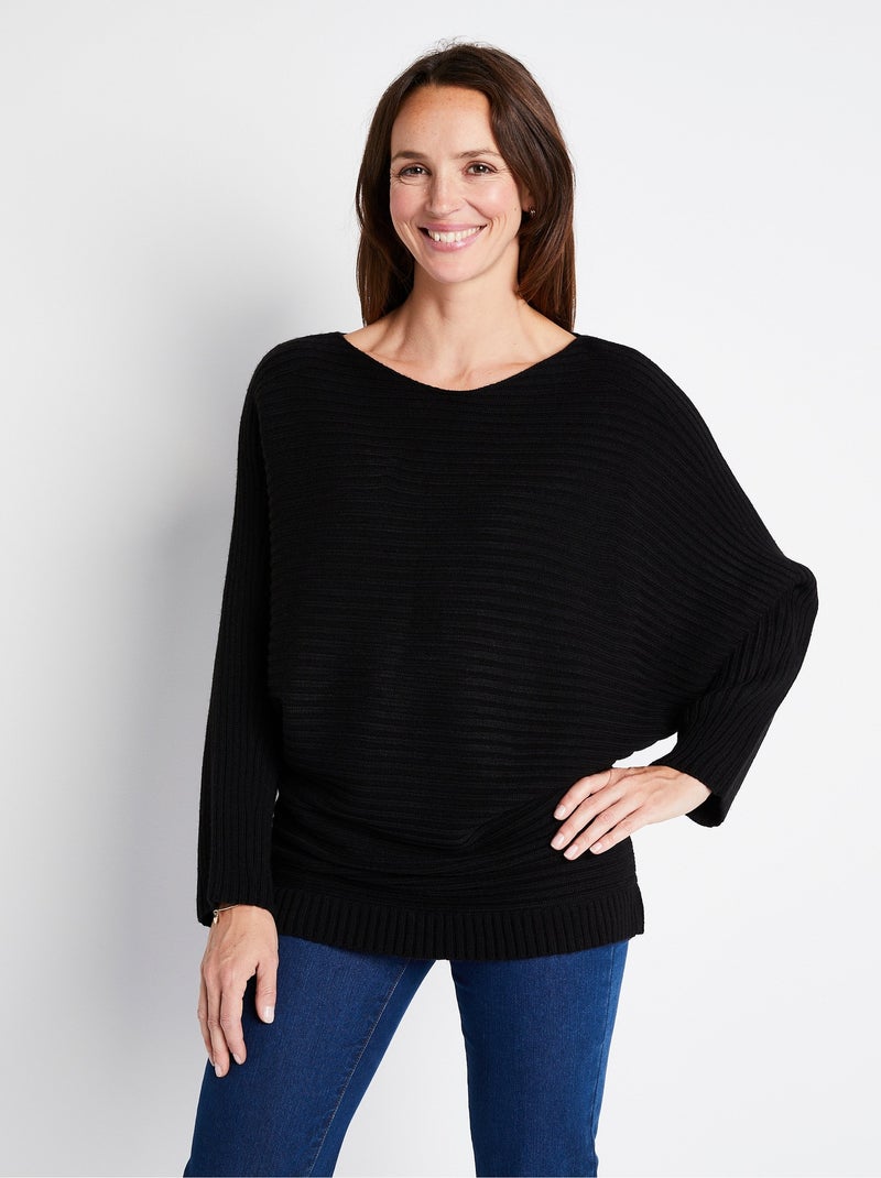 Pull maille côtelée manches chauve-souris - Noir