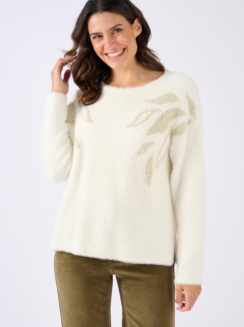 Pull maille poilue à motif végétal brillant - Damart - Blanc Ecru Blanc