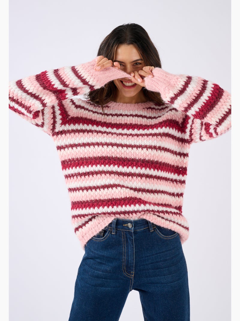 Pull manches ballon rayé - Damart - Rouge