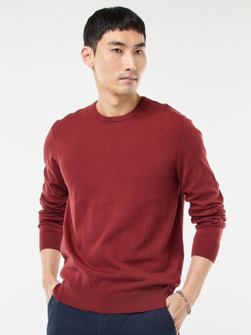 Pull uni à col rond - Rouge