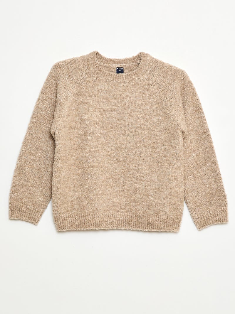 Pulljacquard col rond uni - Beige