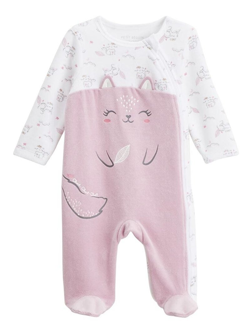 Pyjama bébé en velours ouverture zippée Miss Chatchatchat - Rose