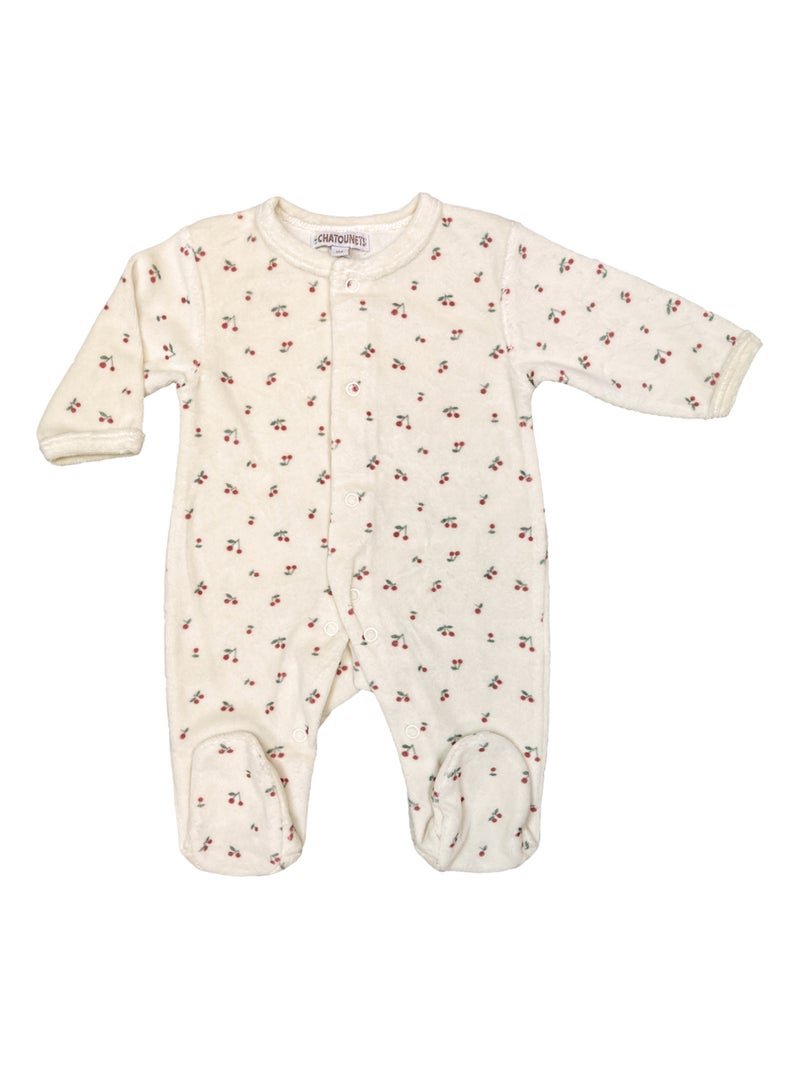 Pyjama bébé velours Cerises Les Chatounets - Beige