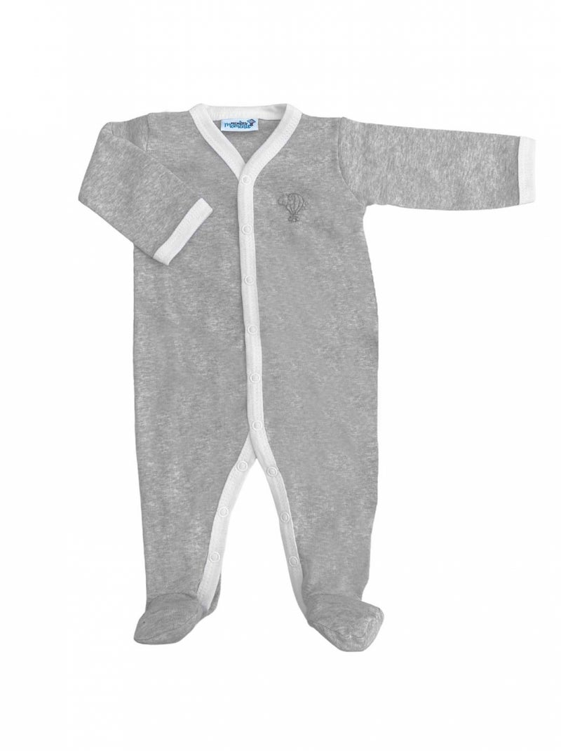 Pyjama été léger - 100% coton biologique - 1 à 6 mois - Gris