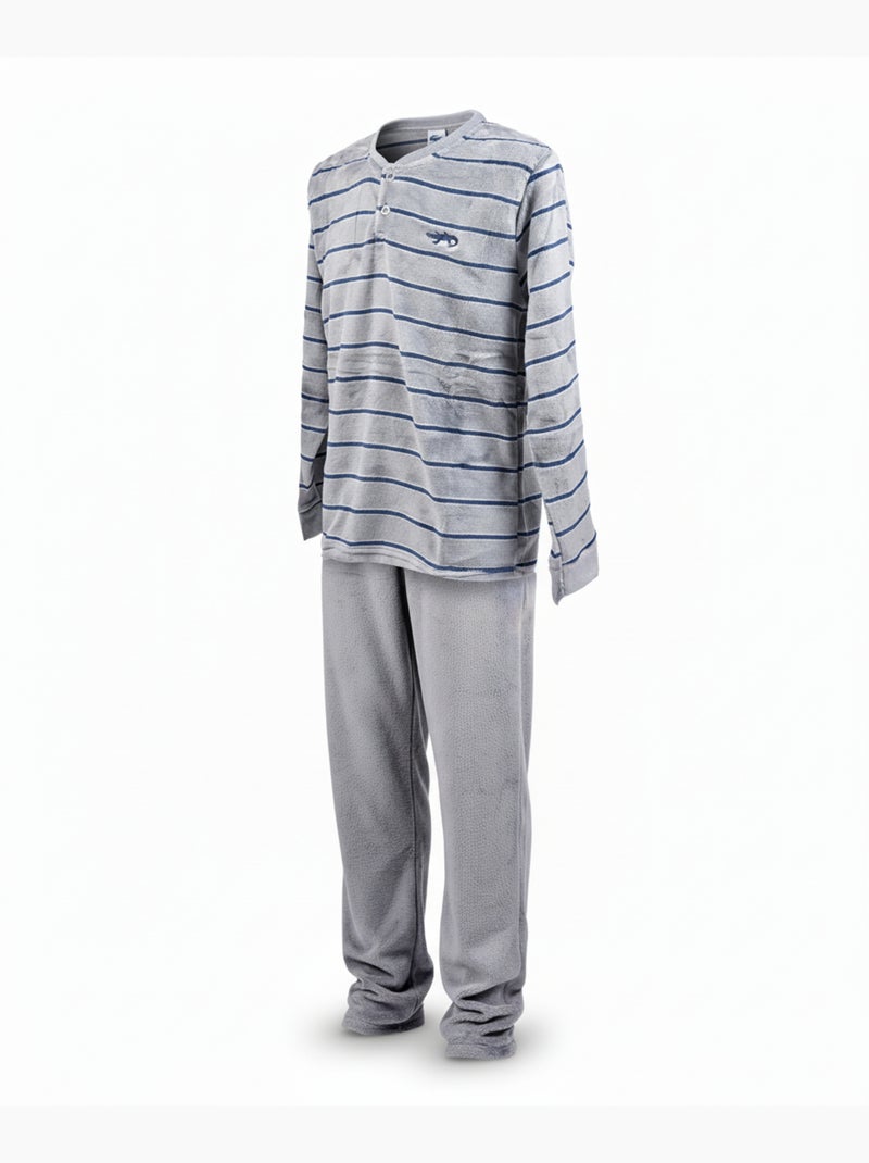 Pyjama Homme Hiver Polaire Doux RAYURE Z2654 - Gris