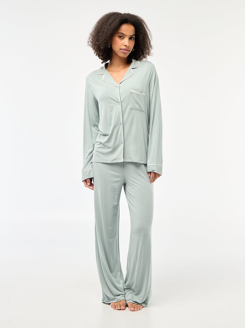 Pyjama long 2 pièces chemise + pantalon - 2 pièces - Bleu