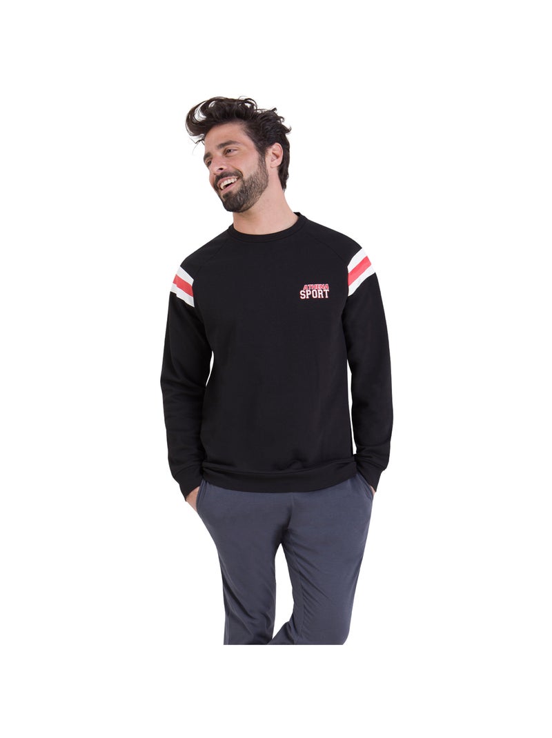 Pyjama long homme Molleton Athena - Noir
