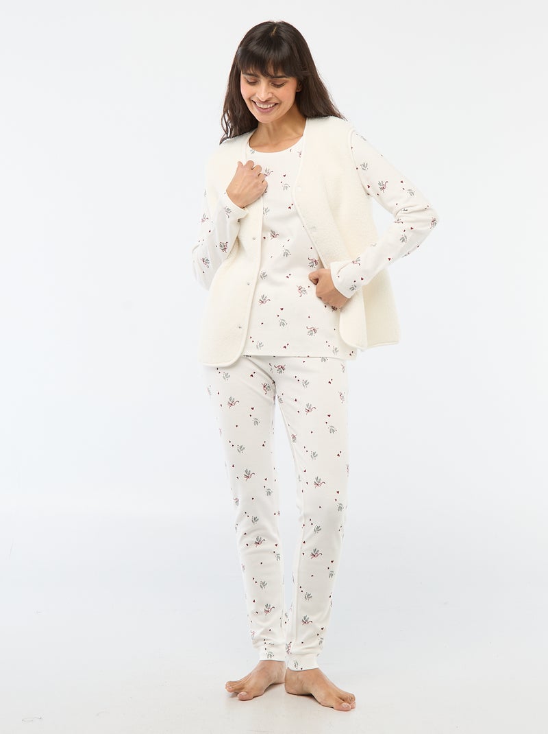 Pyjama long imprimé + gilet sans manches - 3 pièces - Blanc
