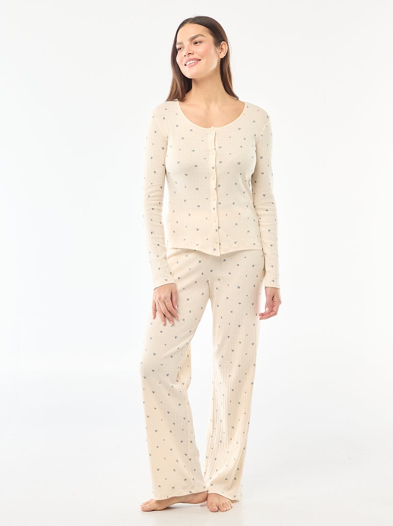 Pyjama long maille pointelle - 2 pièces - Blanc