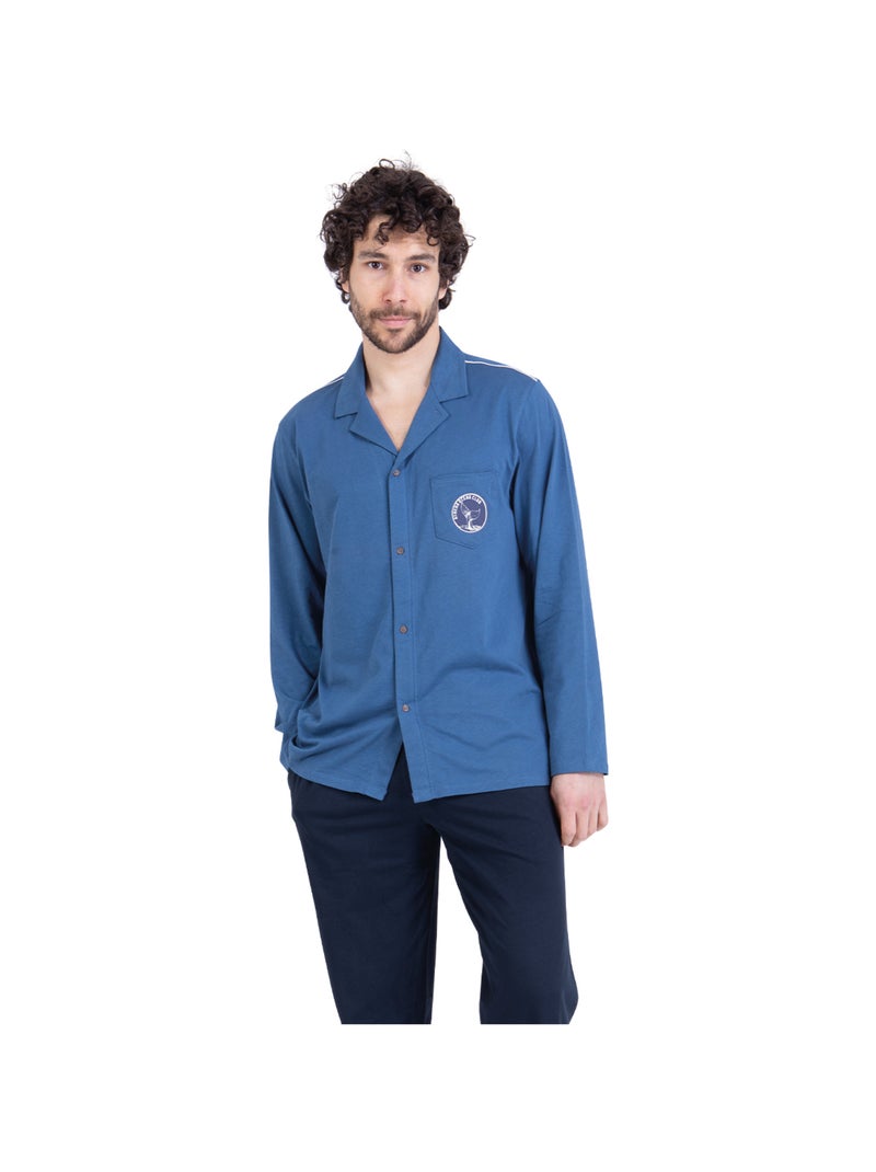 Pyjama long ouvert homme Rayures Ocean Club Athena - Bleu