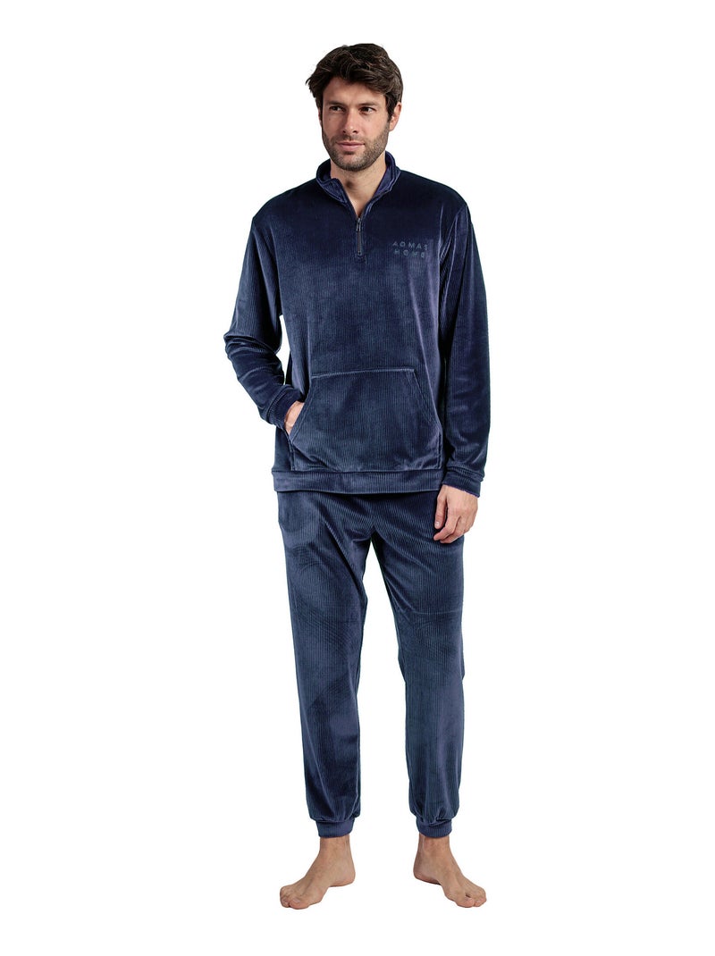Pyjama pantalon sweat col montant zippé Corduroy - Bleu