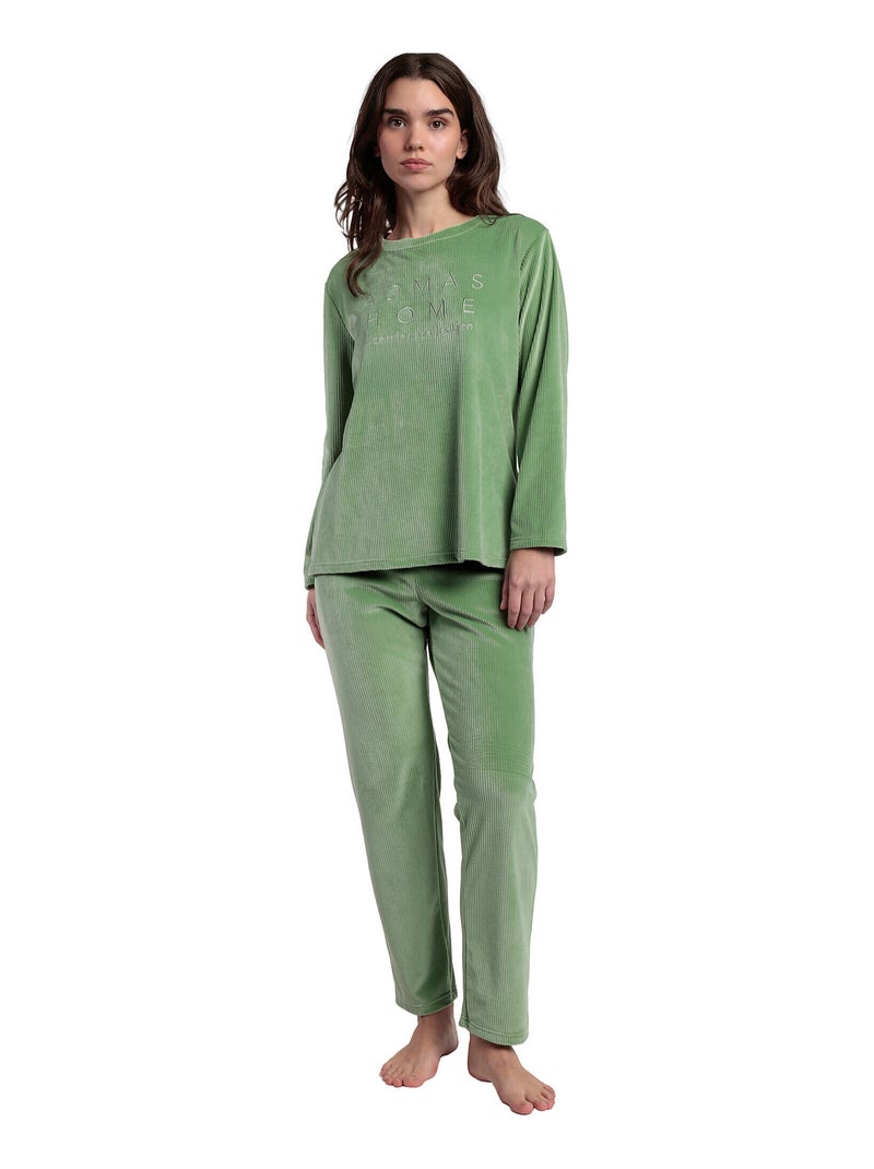 Pyjama pantalon top manches longues ADM Home - Vert