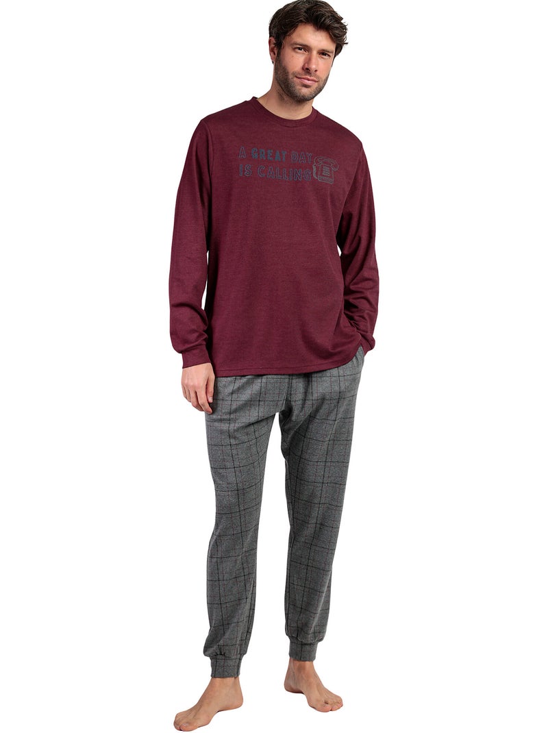 Pyjama pantalon top manches longues Calling - Bordeaux