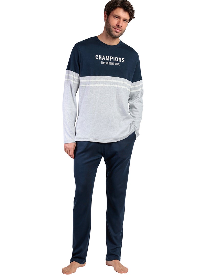Pyjama pantalon top manches longues Champions - Bleu marine
