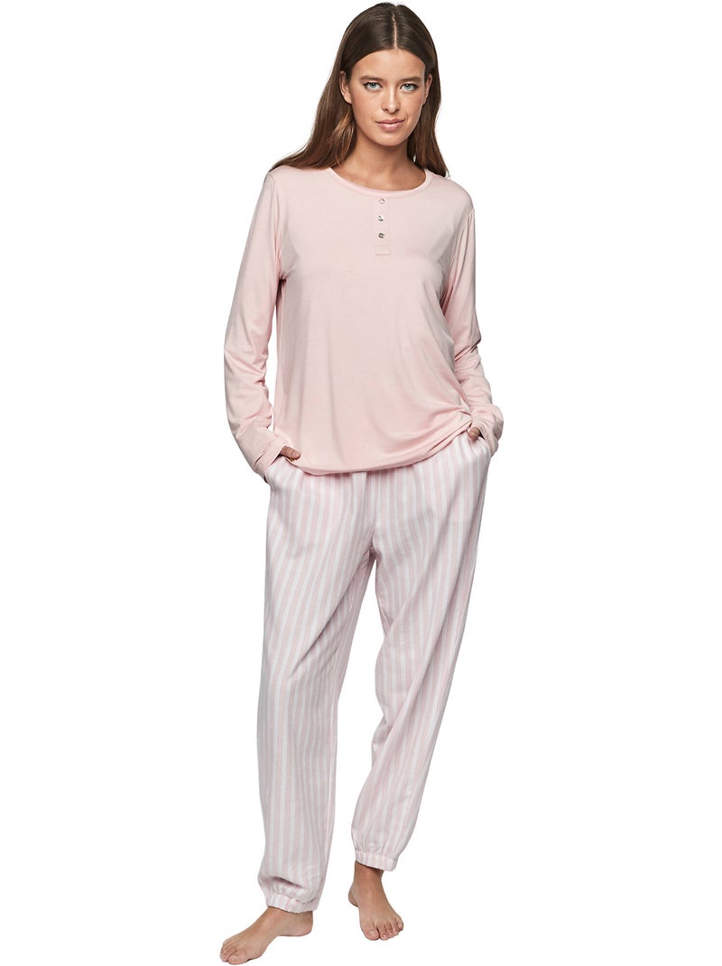Pyjama pantalon top manches longues P105 OXFORD - Rose