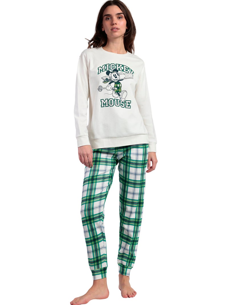Pyjama pantalon top manches longues Ski Mouse Disney - Ecru