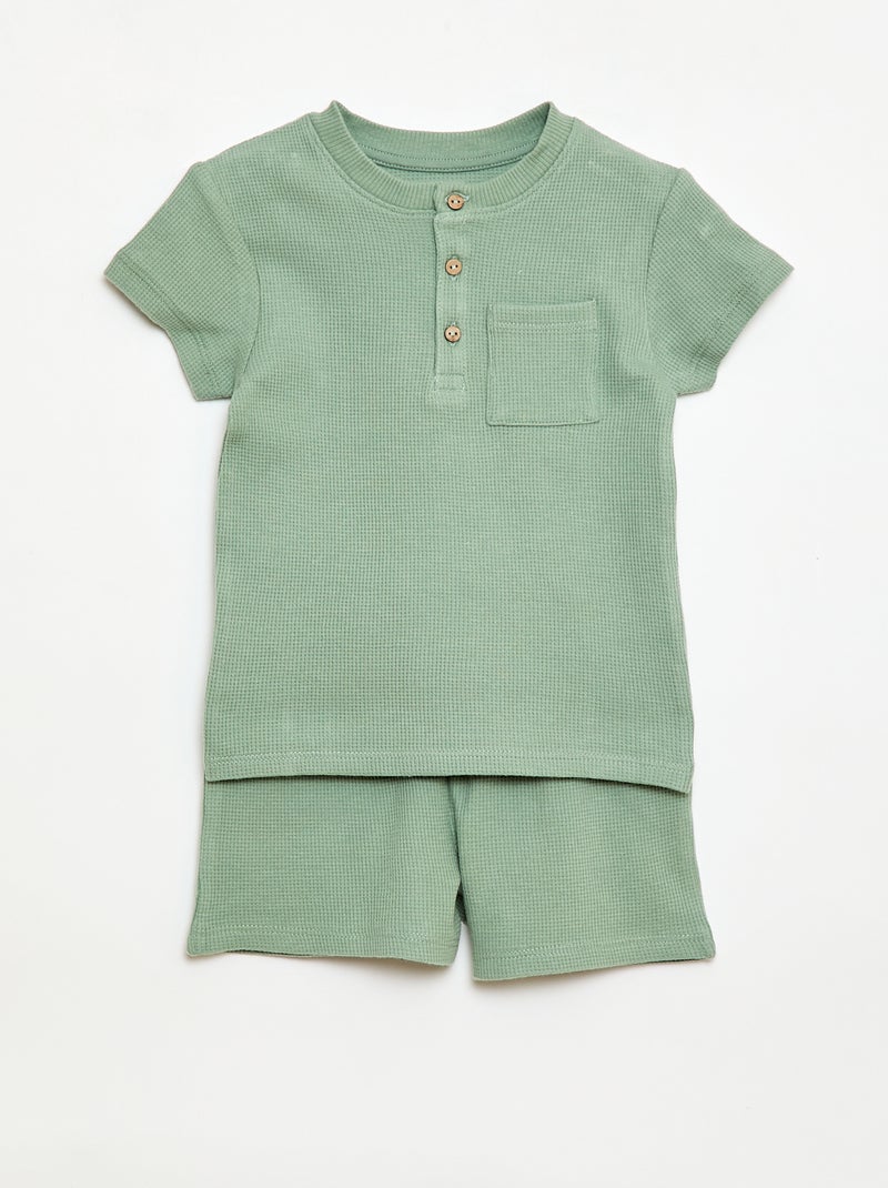 Pyjama short 2 pièces en maille côtelée - Vert
