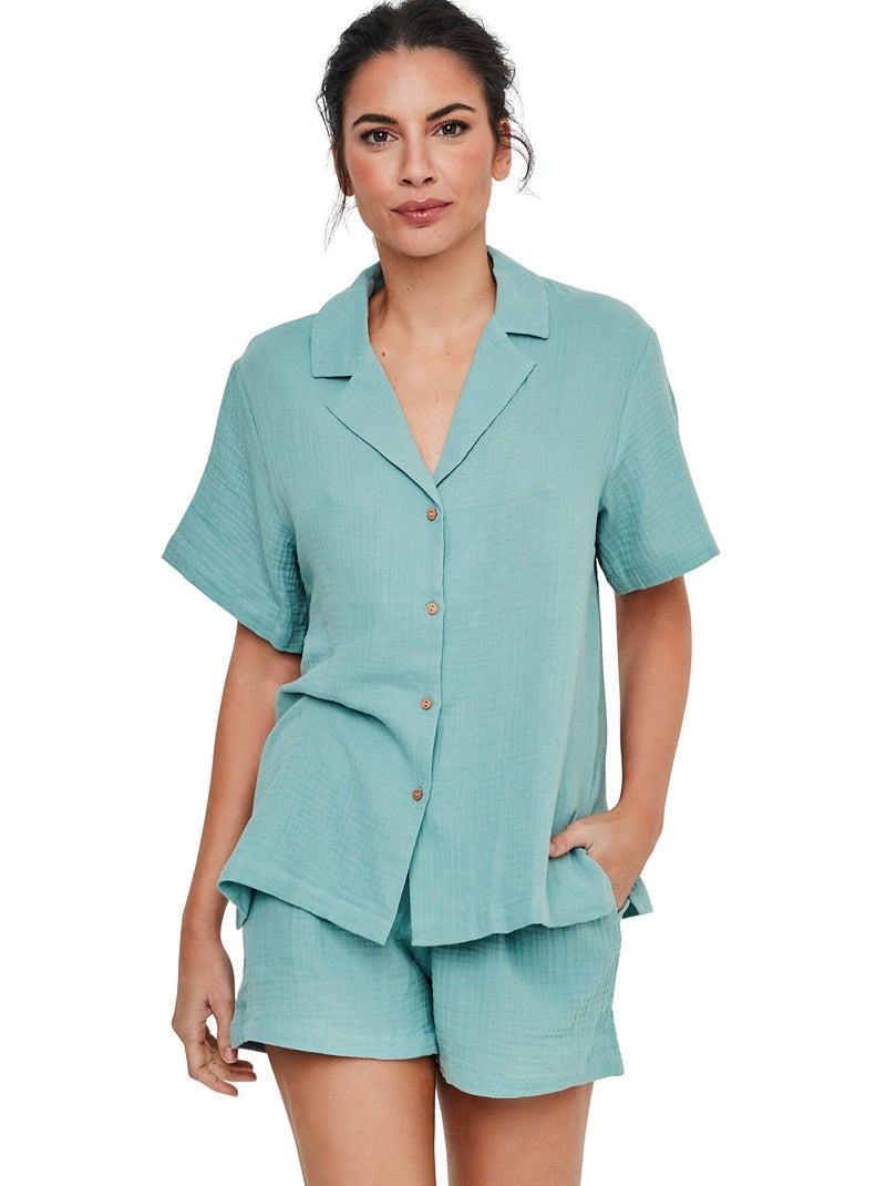 Pyjama short chemise manches courtes HOMEWEAR P119 - Bleu turquoise