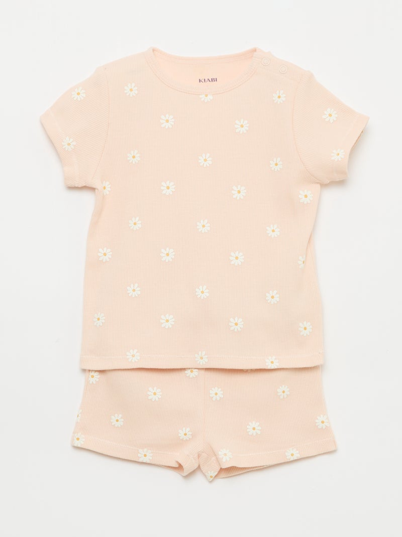 Pyjama t-shirt + short en coton côtelé - 2 pièces - Rose
