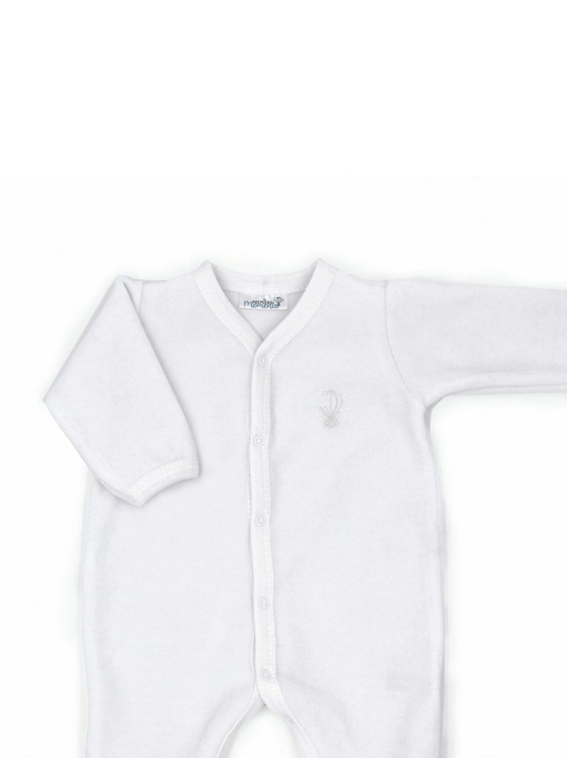 Pyjama velours - 100% coton biologique - 1 à 6 mois - Blanc