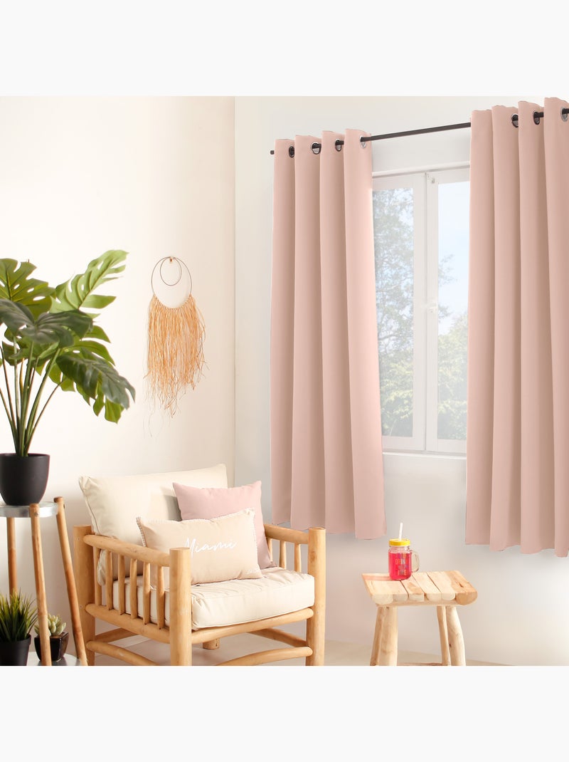 Rideau occultant fil noir avec 8 œillets - Vieux rose