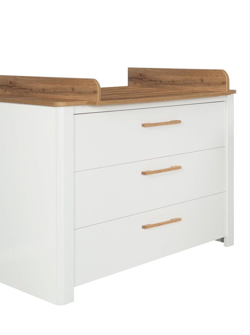 Commode à langer évolutive 3 tiroirs en bois effet chêne - ROBA 'Ava' - Blanc