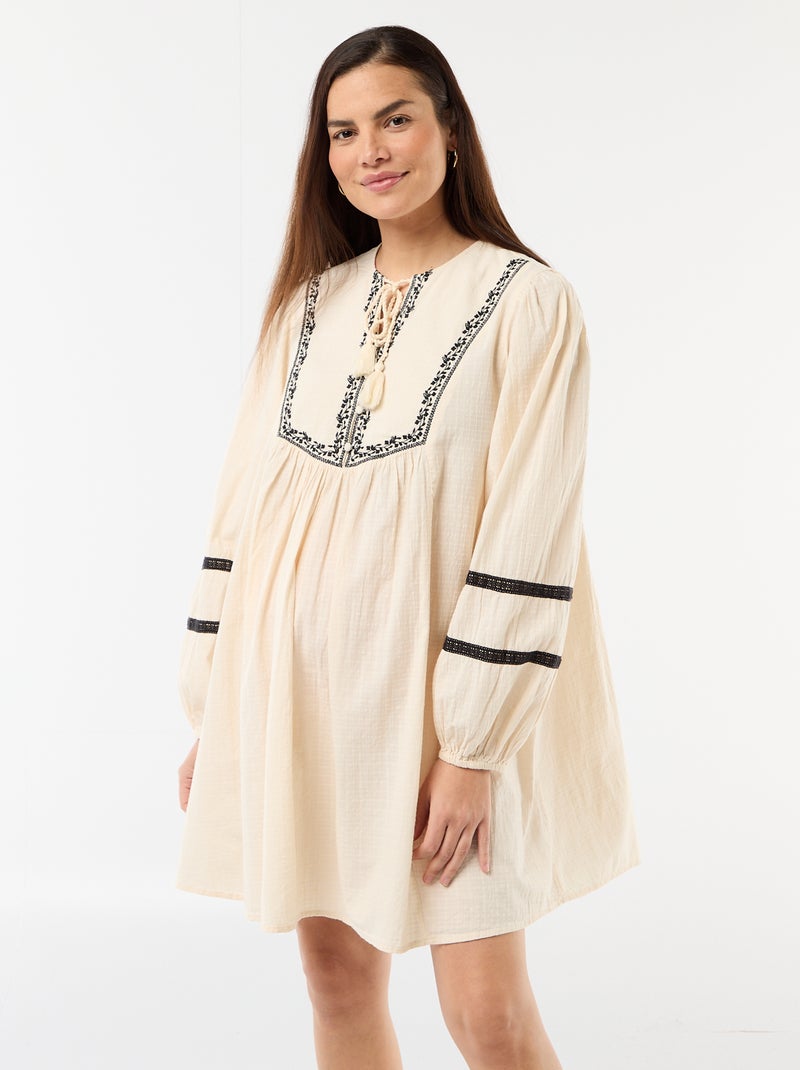 Robe ample de maternité avec broderies - Blanc
