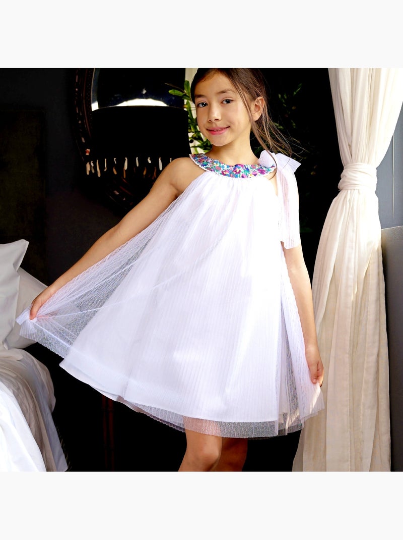 Robe Cérémonie à Col Fleuri ALIZEE - La Faute à Voltaire - Blanc Violet