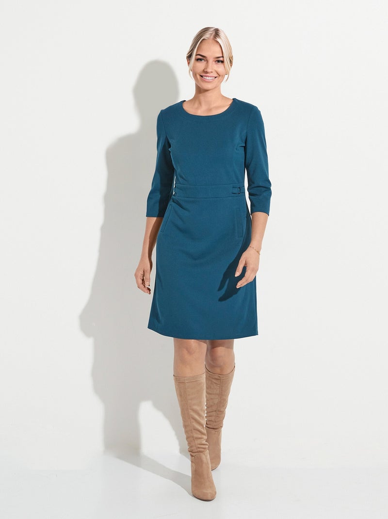 Robe droite manches 3/4 maille souple - Bleu canard