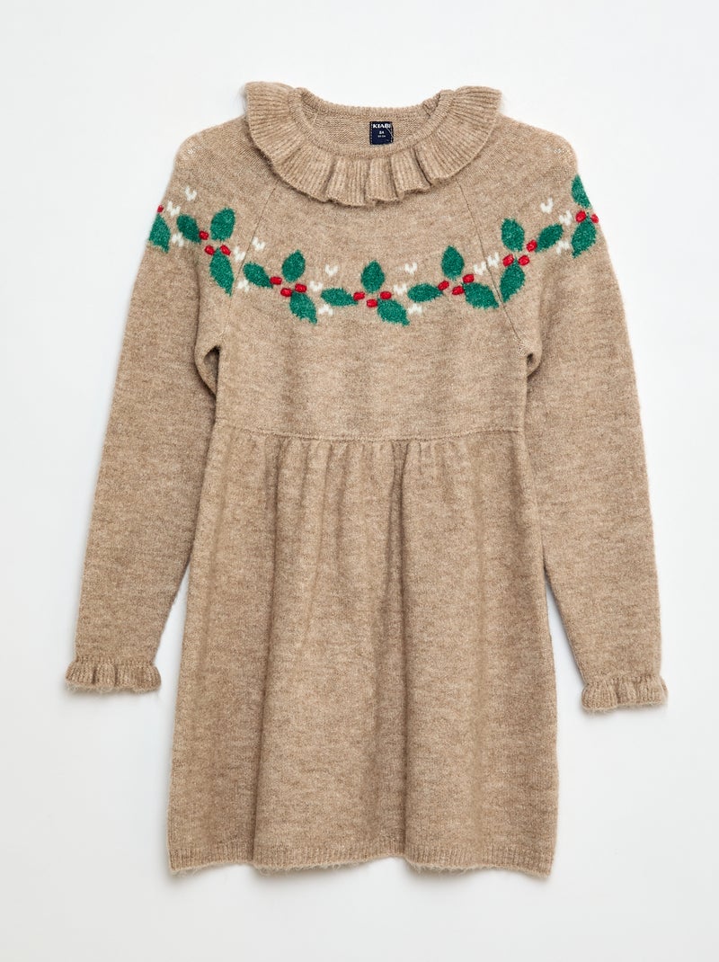 Robe en maille mousseuse 'Noël' avec collerette - Beige