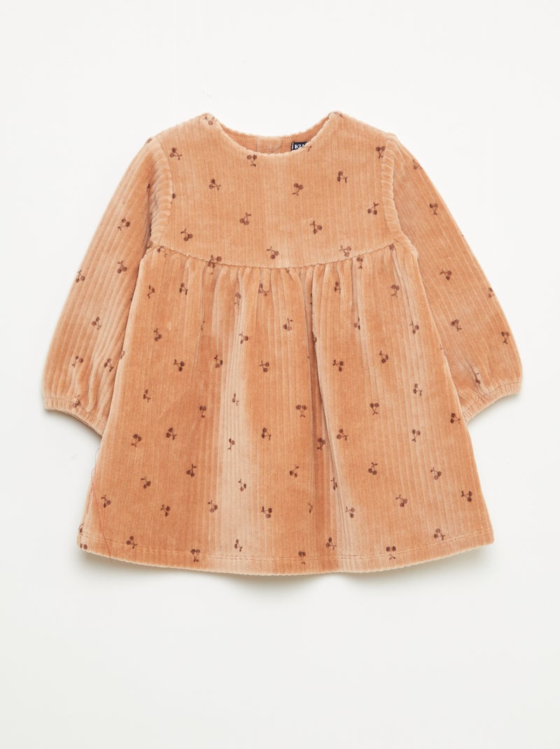 Robe en velours à manches longues avec motif - Marron